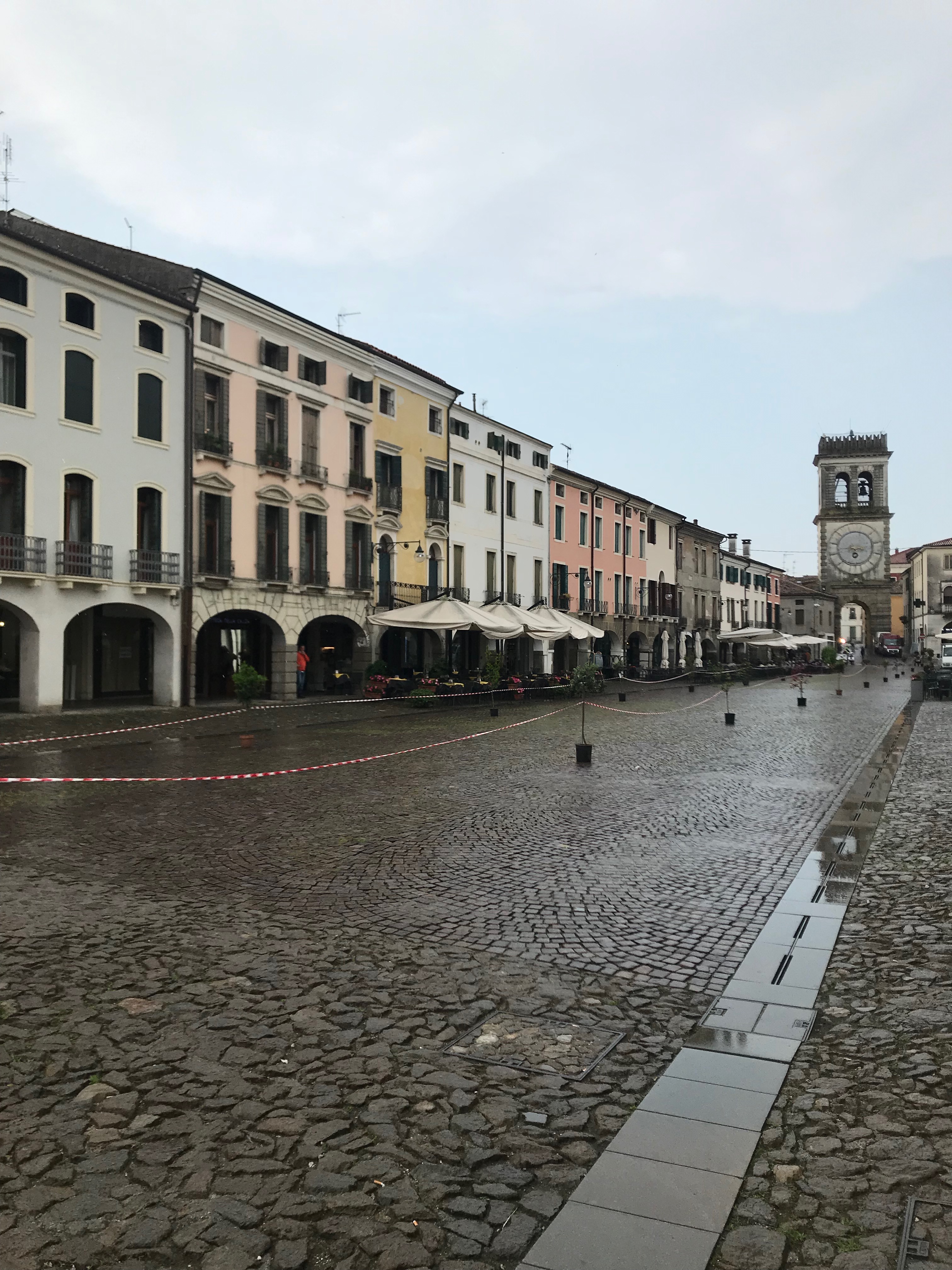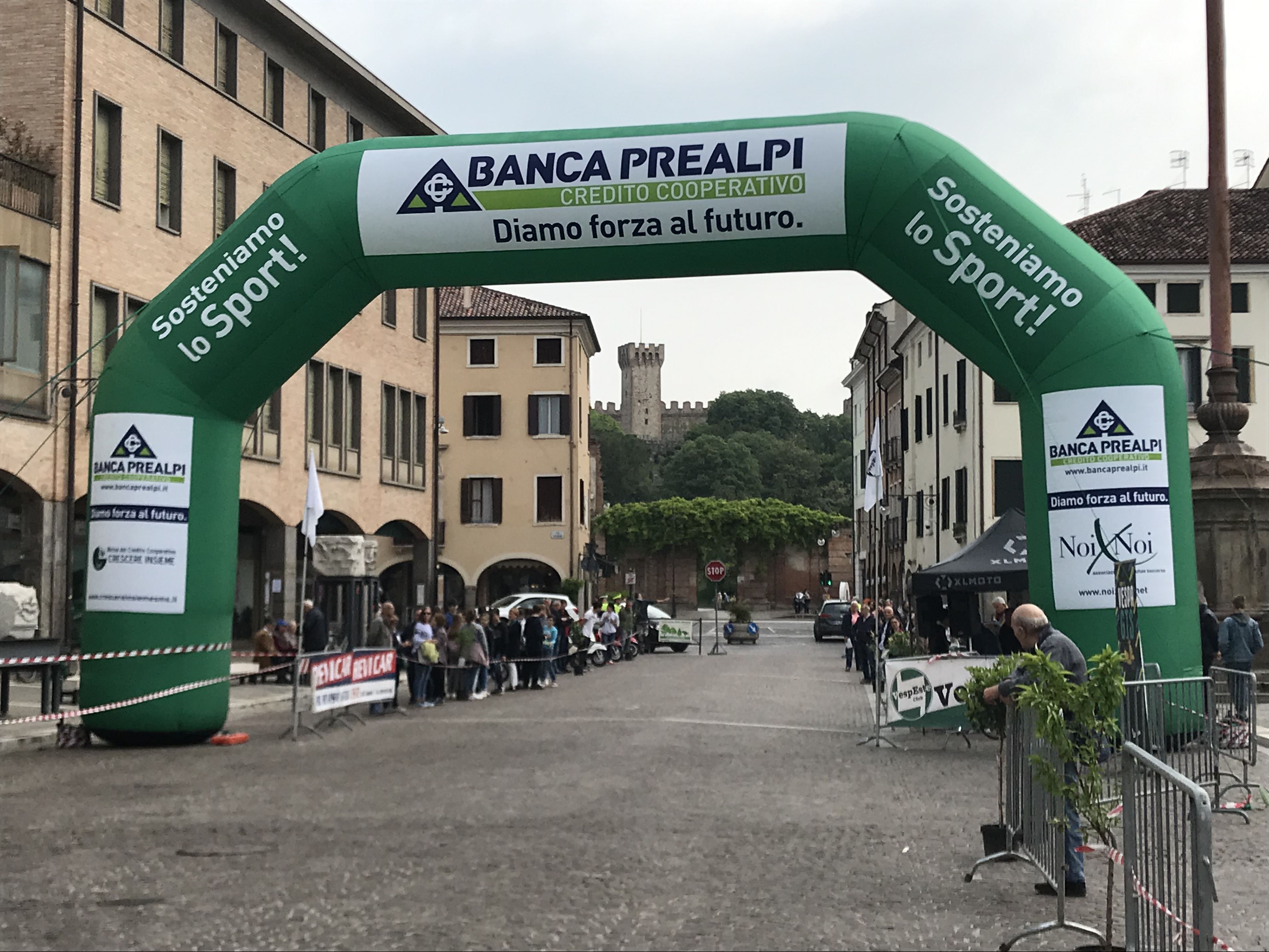 Freitag morgen, kurz vor 9:00 in Este (Piazza Maggiore), noch sind die Straßen nass, der Himmel grau. Langsam versammeln sich Schaulustige um das Zelt des Vespa Club Este. Der DJ ist motiviert und voller Vorfreude, denn in wenigen Minuten dürften die ersten Biker auf ihren Vespas durch das Tor des Turmes kommen.