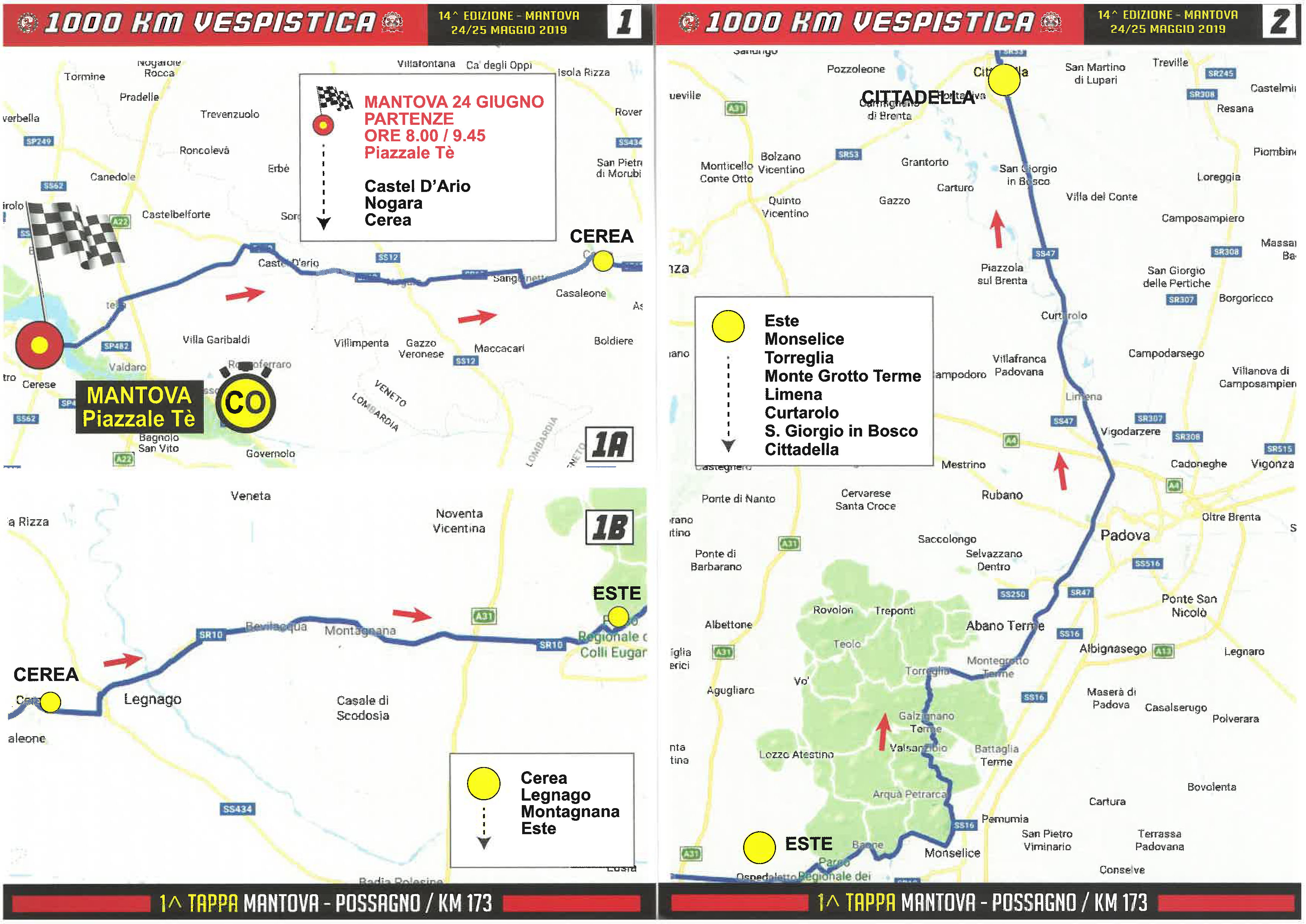 Hier unten die erste Strecke, auf der Homepage https://www.vespaclubmantova.it/sport/sport-2019/calendario/1000km-vespistica-2019 findet ihr die gesamte Strecke (in .pdf unter Download). Auch interessant: http://www.1000kmvespistica.it
