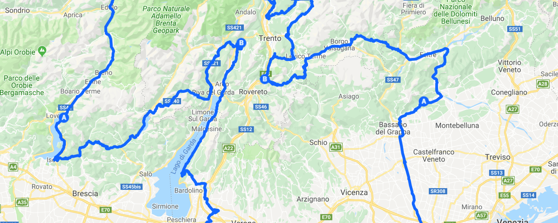 Hier unten die erste Strecke, auf der Homepage https://www.vespaclubmantova.it/sport/sport-2019/calendario/1000km-vespistica-2019 findet ihr die gesamte Strecke (in .pdf unter Download). Auch interessant: http://www.1000kmvespistica.it