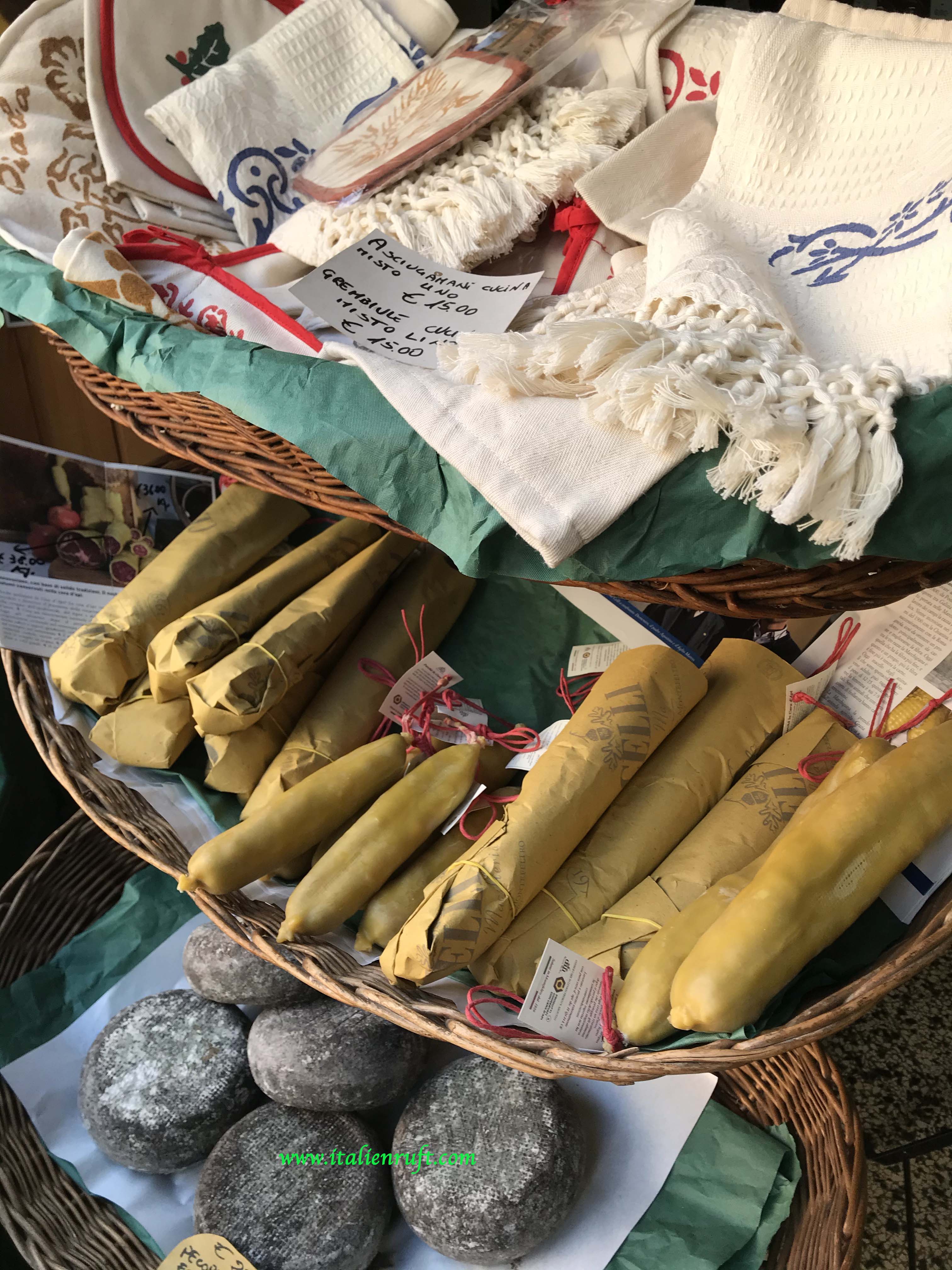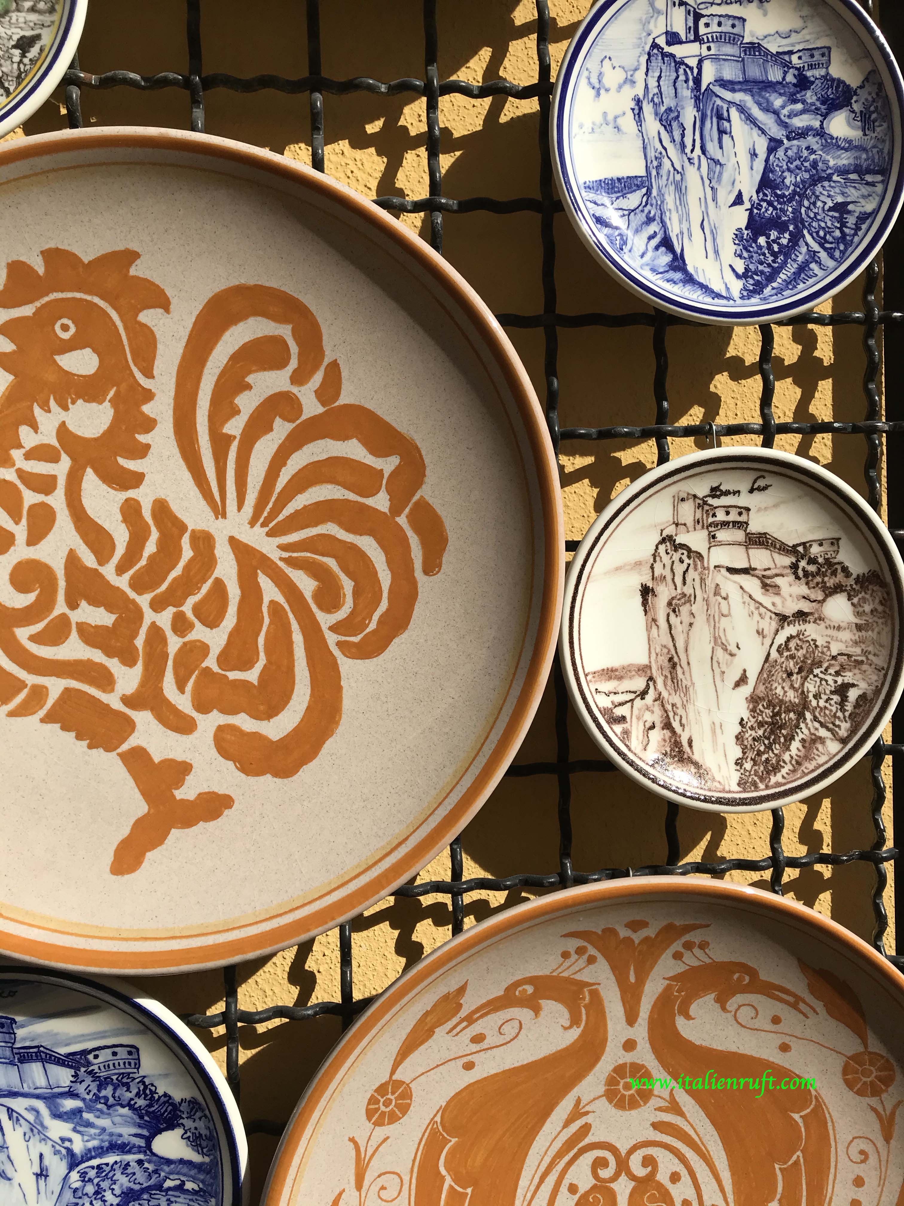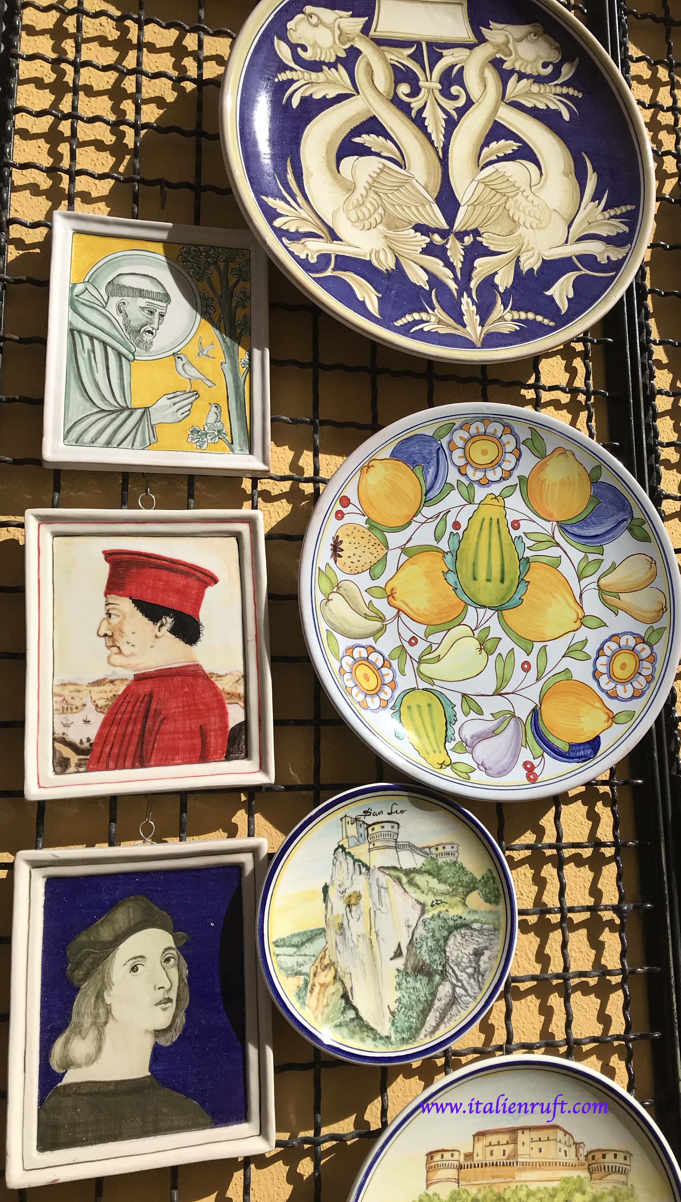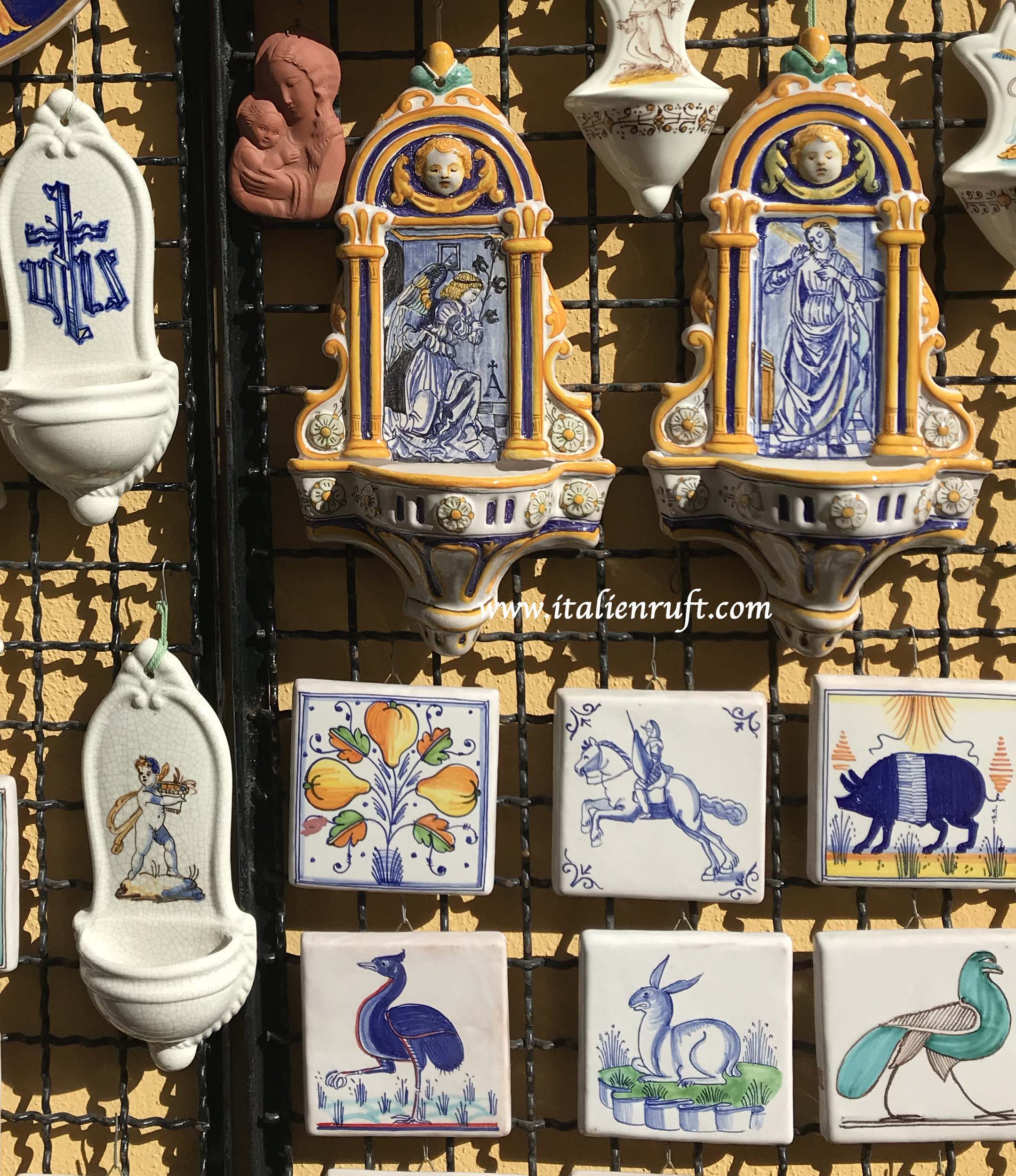 Typische Souvenirs fehlen ebenso nicht. Und wer die Keramiken mit den kleinen Brunnen noch nicht kennt, das sind kleine Acquasantiere für Zuhause = kleine Weihwasserbecken, die man an die Wand hängt.