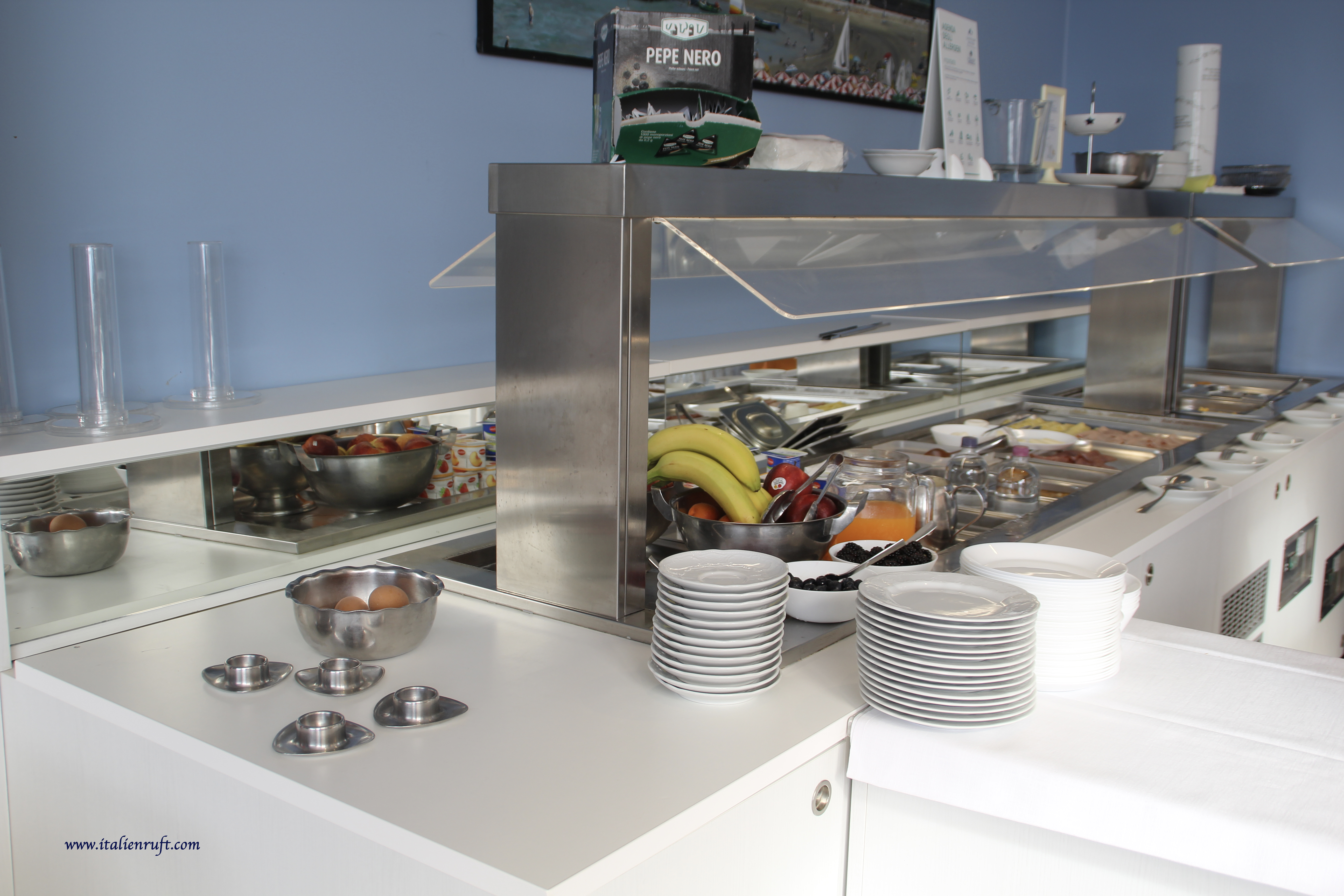 Was sich völlig verändert hat, ist das Frühstücksbuffet. Lange Tische und Kühlvitrinen mit allerlei Leckerem, wo man einfach nur zugreifen konnte, das gib´s nicht mehr. Self-Service ist mit Covid-19 nicht mehr möglich.