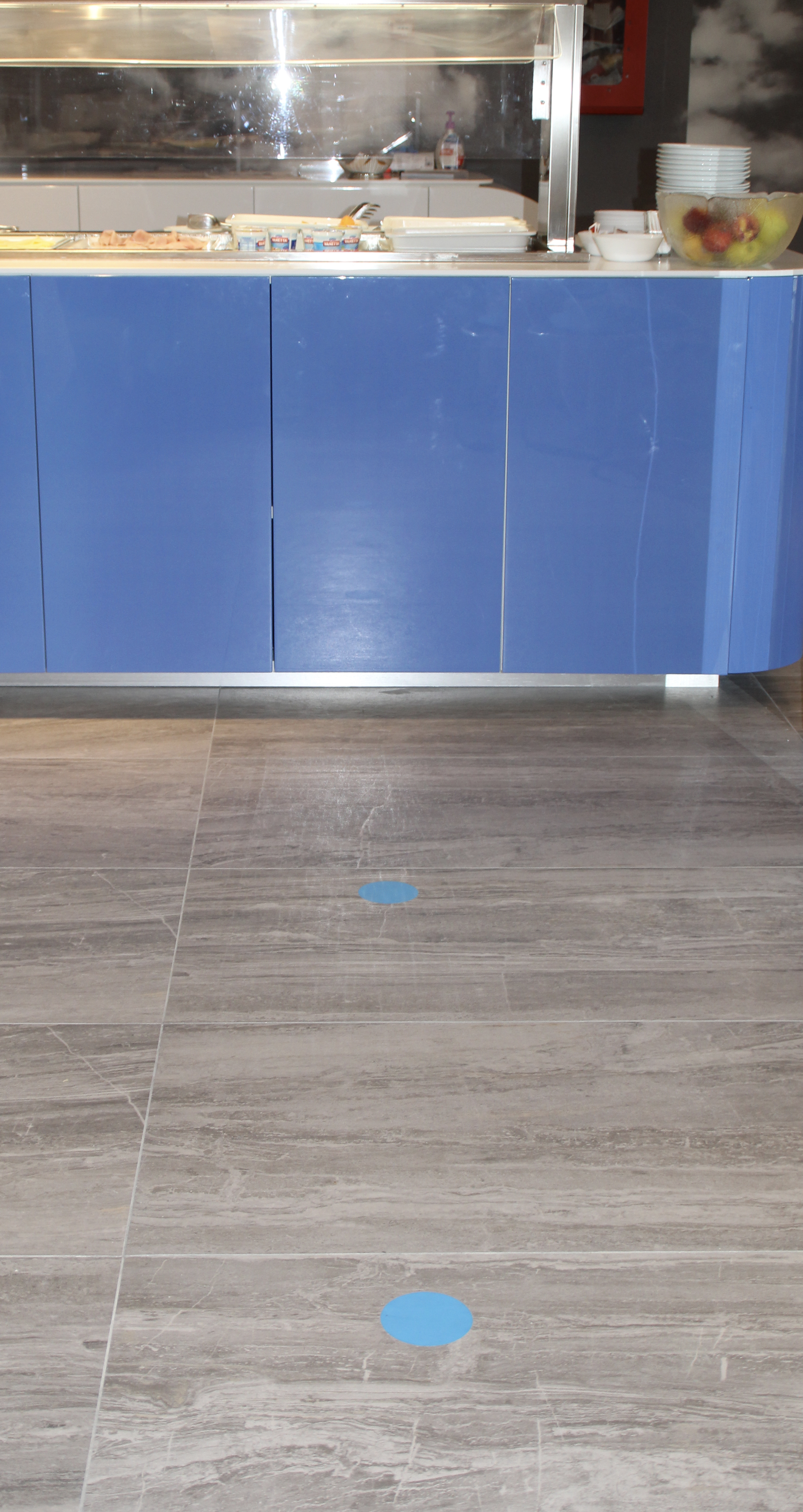 Da Selbstbedienung nur für Abgepacktes gilt, wurde das Frühstücksbuffet in den beiden Hotels völlig neukonzipiert. Mit etwas mehr Personalaufwand wird das Essen von den Kellnern am Buffet serviert. Der Gast stellt sich gewappnet mit Mundschutzmaske und immer 1 Meter Abstand an (am Boden bitte die Markierungen beachten), sagt was er gerne möchte und das Personal überreicht dem Gast sein Frühstück.