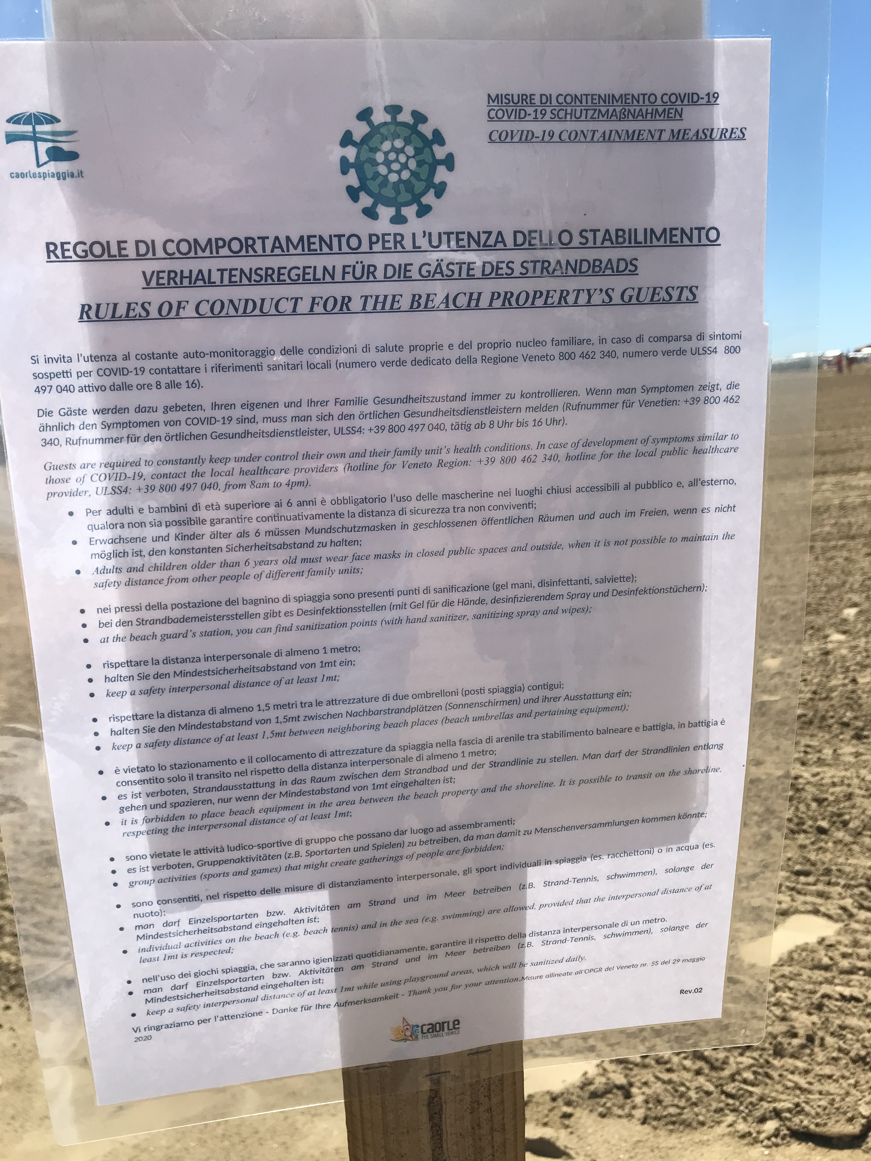Die Die Infektionszahlen in Italien sind derzeit sehr niedrig. Ein paar Brandherde sind aufgetaucht, aber sie wurden isoliert. Im Veneto fühle ich mich eigentlich sehr sicher. Aber wirklich sicher ist nur eins: Dieses Virus werden wir nicht so einfach los. Was jetzt hilft, ist gemeinsam Covid-19 unter Kontrolle zu halten, indem wir alle uns möglichen Sicherheitsvorkehrungen anwenden, damit wir Gelassenheit auch unseren Urlaub zu genießen können.
