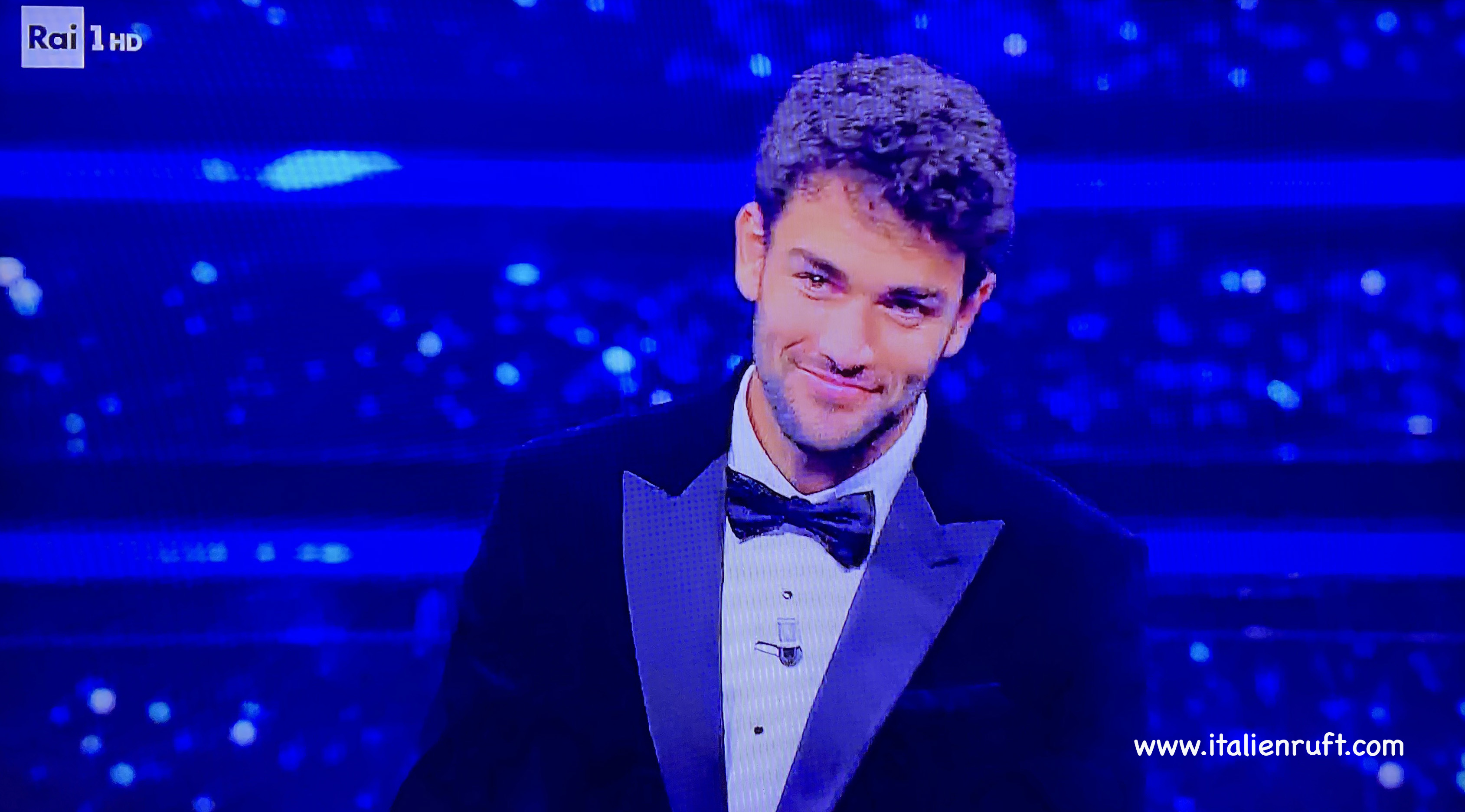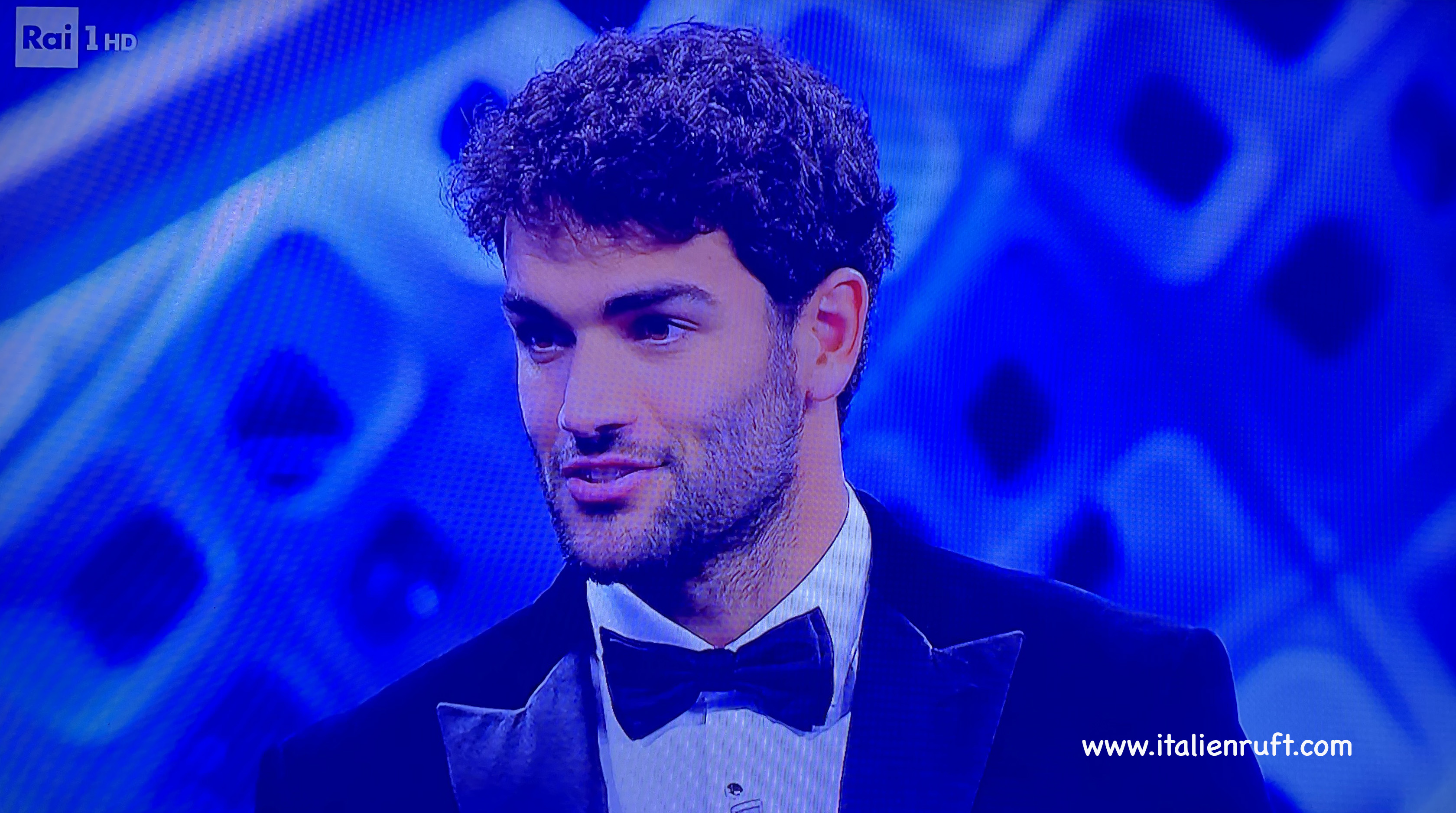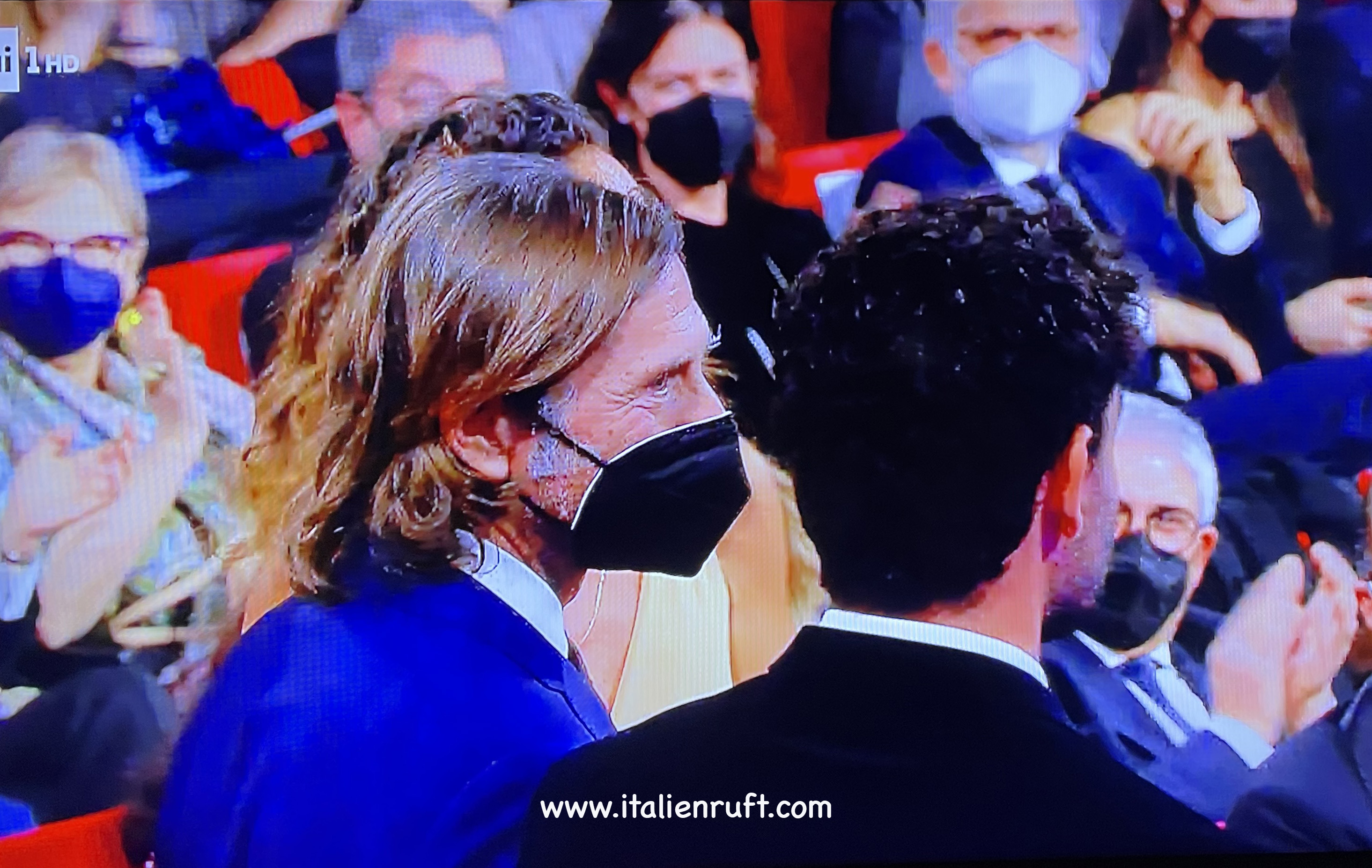 Zu Gast war gestern auch Matteo Berrettini, die Nummer 6 in der Weltrangliste des Tennis. Er ist der erste italienische Tennisspiel, der im Finale von Wimbledon je gespielt hat. Auf der Bühne vom Ariston ohne seinen Tennisschläger fühlt er sich wie ein Fisch aus dem Wasser. „Hörst du nicht meinen Herzschlag?“, sagte er zu Amadeus. Im Publikum hingegen hört man lautstark: „Sei bellissimo!“ Da kann ich nur zustimmen 😀. Und dann kam noch heraus, dass sein Vater, Luca Berrettini, mit Fiorello früher zusammengearbeitet hatte. Sie waren beide Animateuren in einer Ferienanlage. Wie klein ist doch die Welt!