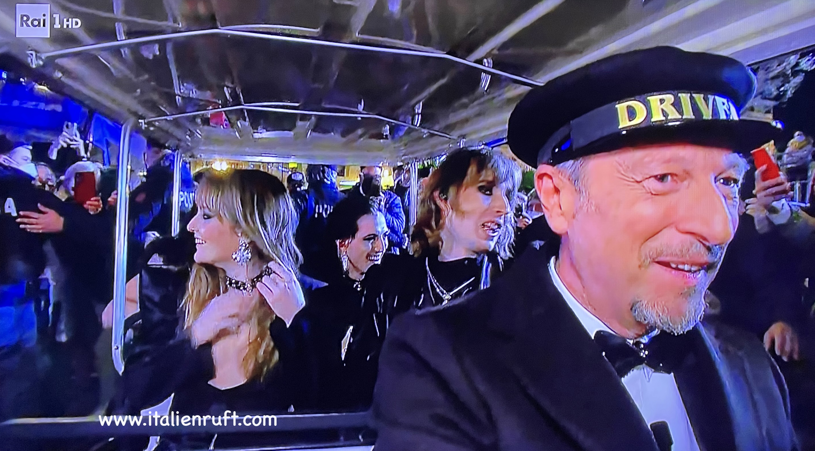Die Tradition vom Festival di Sanremo will es, dass die Gewinner des Jahres zuvor ihren Auftritt machen und somit war die Band Måneskin geladen: Amadeus hat der Band versprochen, dass, wo auch immer sie sind, er holt sie persönlich ab. Und so tat er dies: Versprochen ist versprochen.